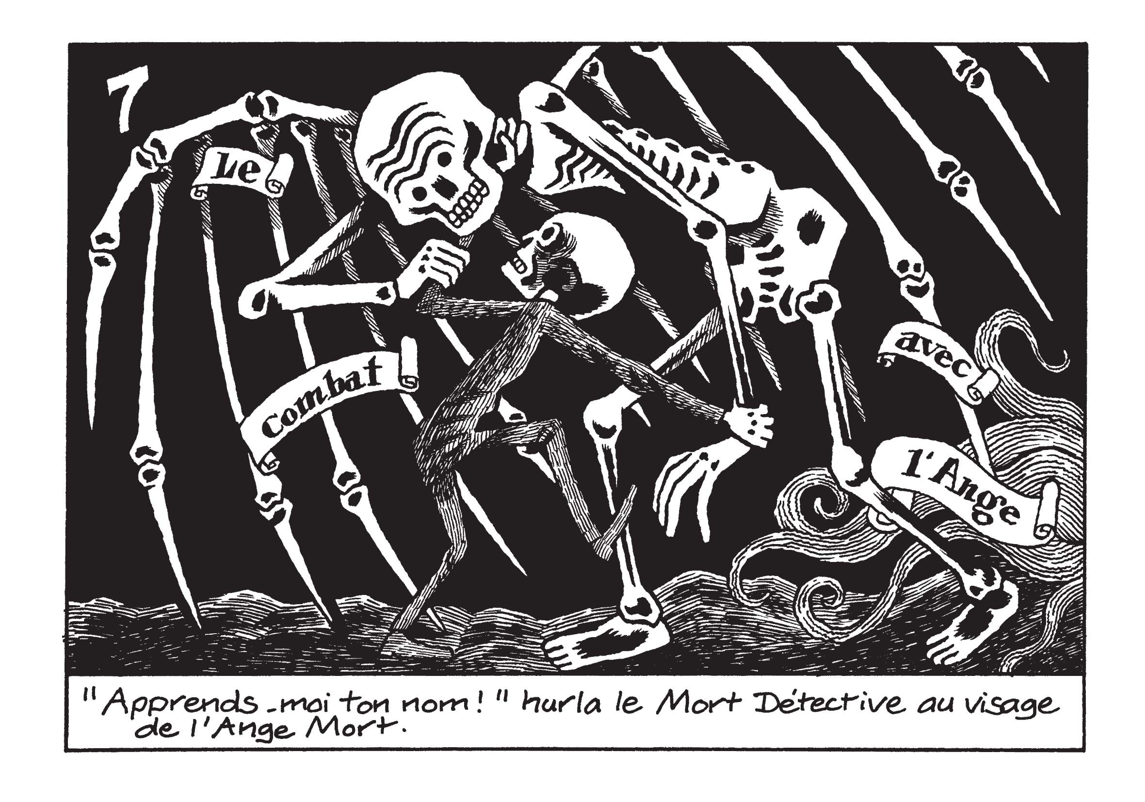 Démarré en 2003 dans l’éphémère revue Black (Coconino), Le Mort Détective est un feuilleton composé uniquement des têtes de ses chapitres.