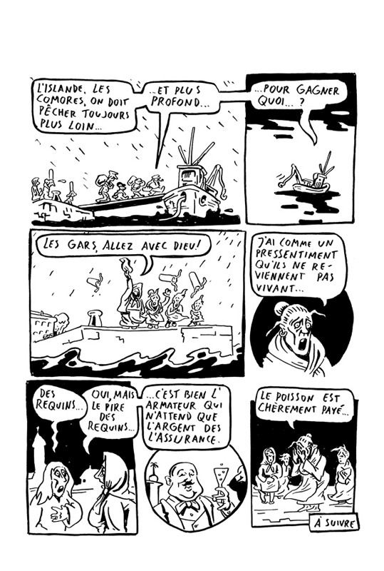 A son habitude, Willem nous explique la géopolitique internationale mieux que personne en quatre courts feuilletons publiés dans Charlie Hebdo : poissons recherchés pour leur vertus aphrodisiaques, armateurs véreux, pirates, guerres, prostitution venue de l’Est, flics corrompus, maîtres-nageurs altermondialistes constituent le théâtre du pitoyable monde vu par Willem : merde, c’est le nôtre.