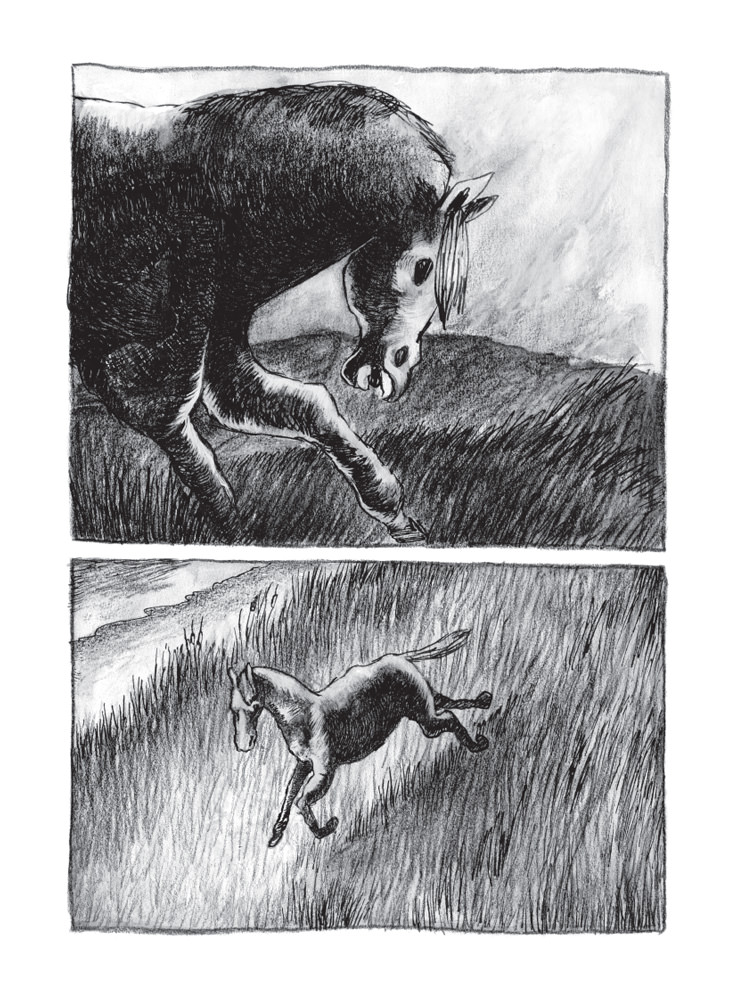 Le dessin de Vanoli fait d’autant plus ressortir les sensations et les matières que les planches sont muettes. Un récit humide et charbonneux.